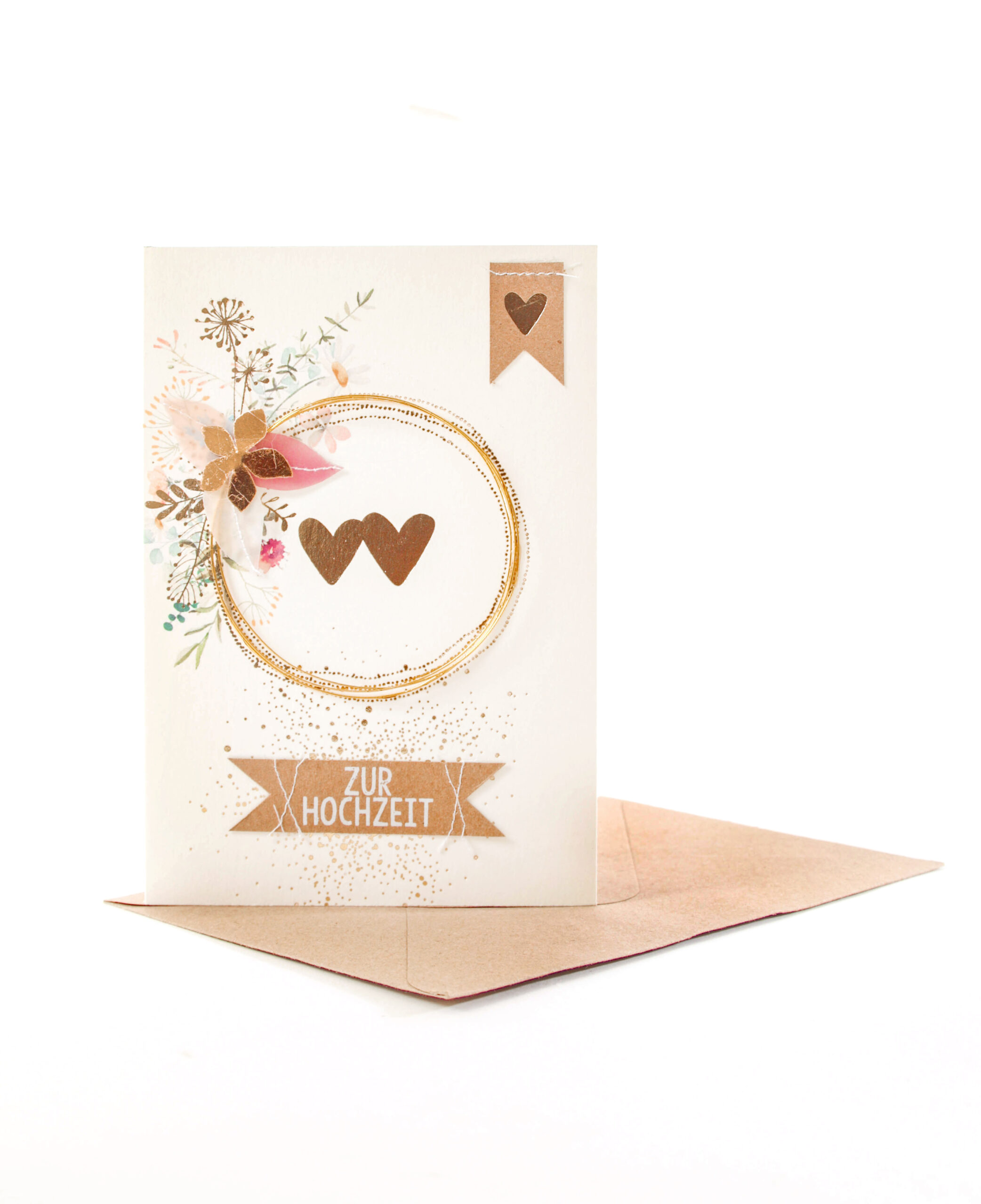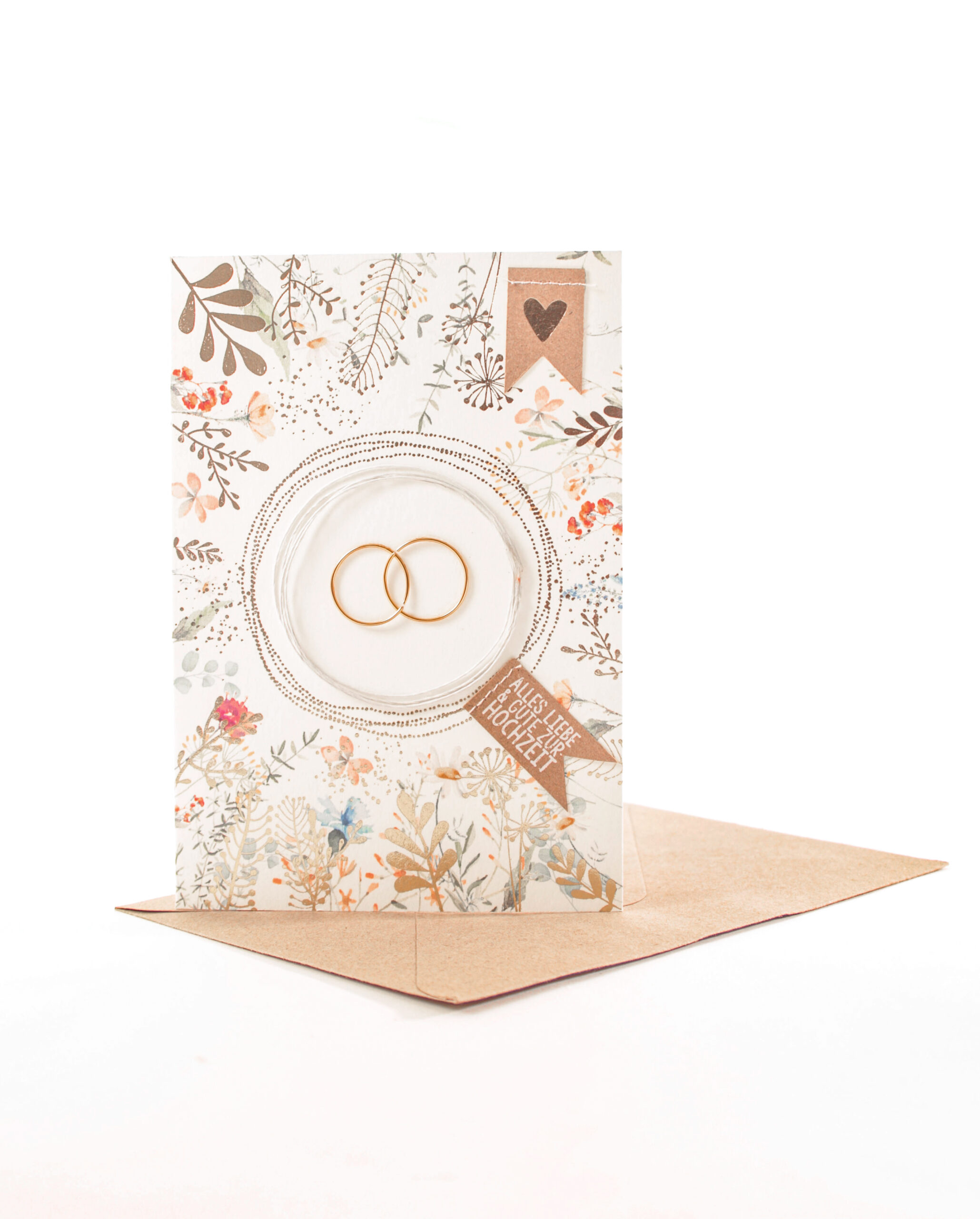 Keine Hochzeit ohne Blumen! Diese Karte voller schöner, wilder Blumen fängt den Zauber der blühenden Liebe ein und sendet blumige Hochzeitsgrüße.