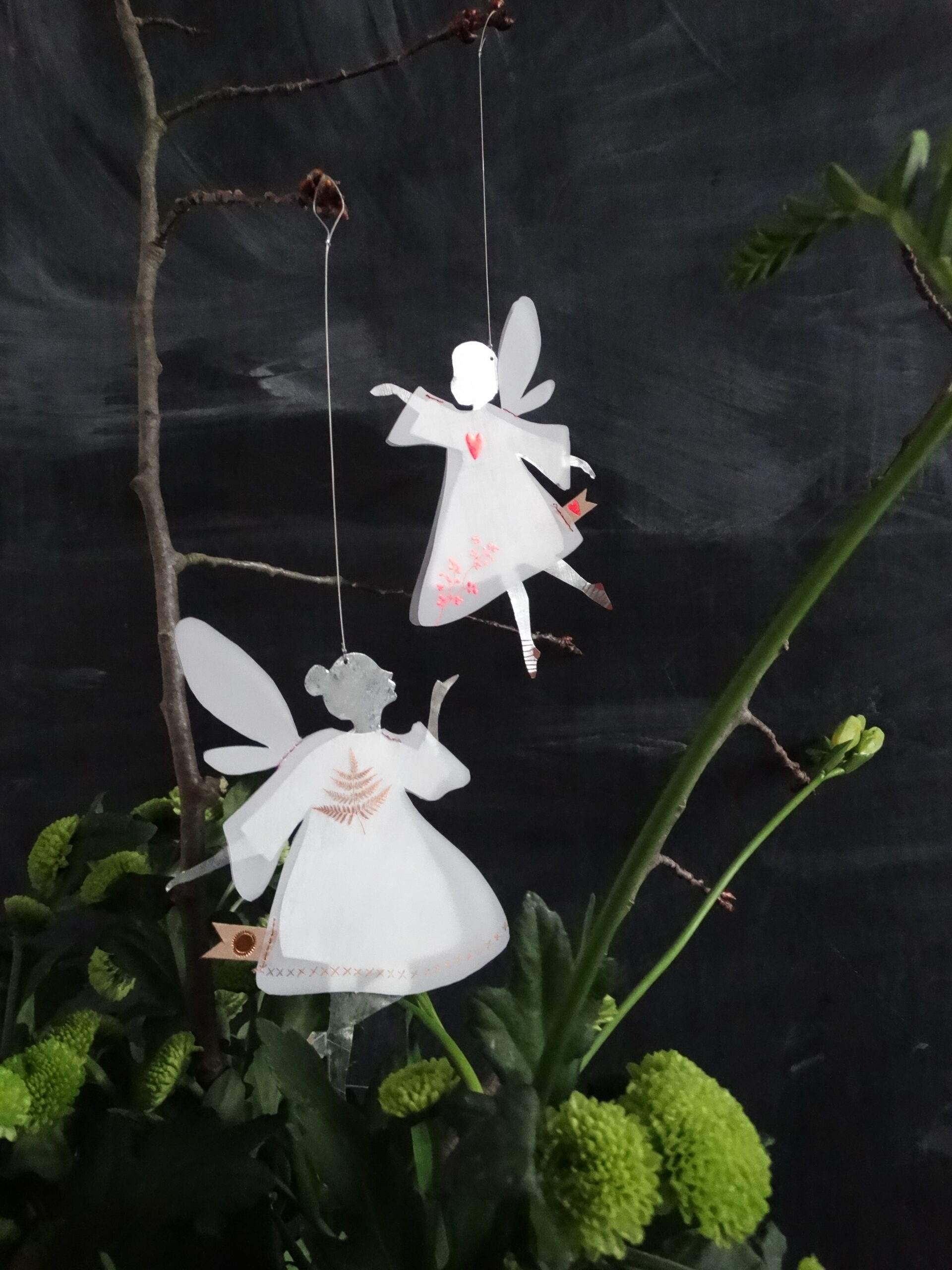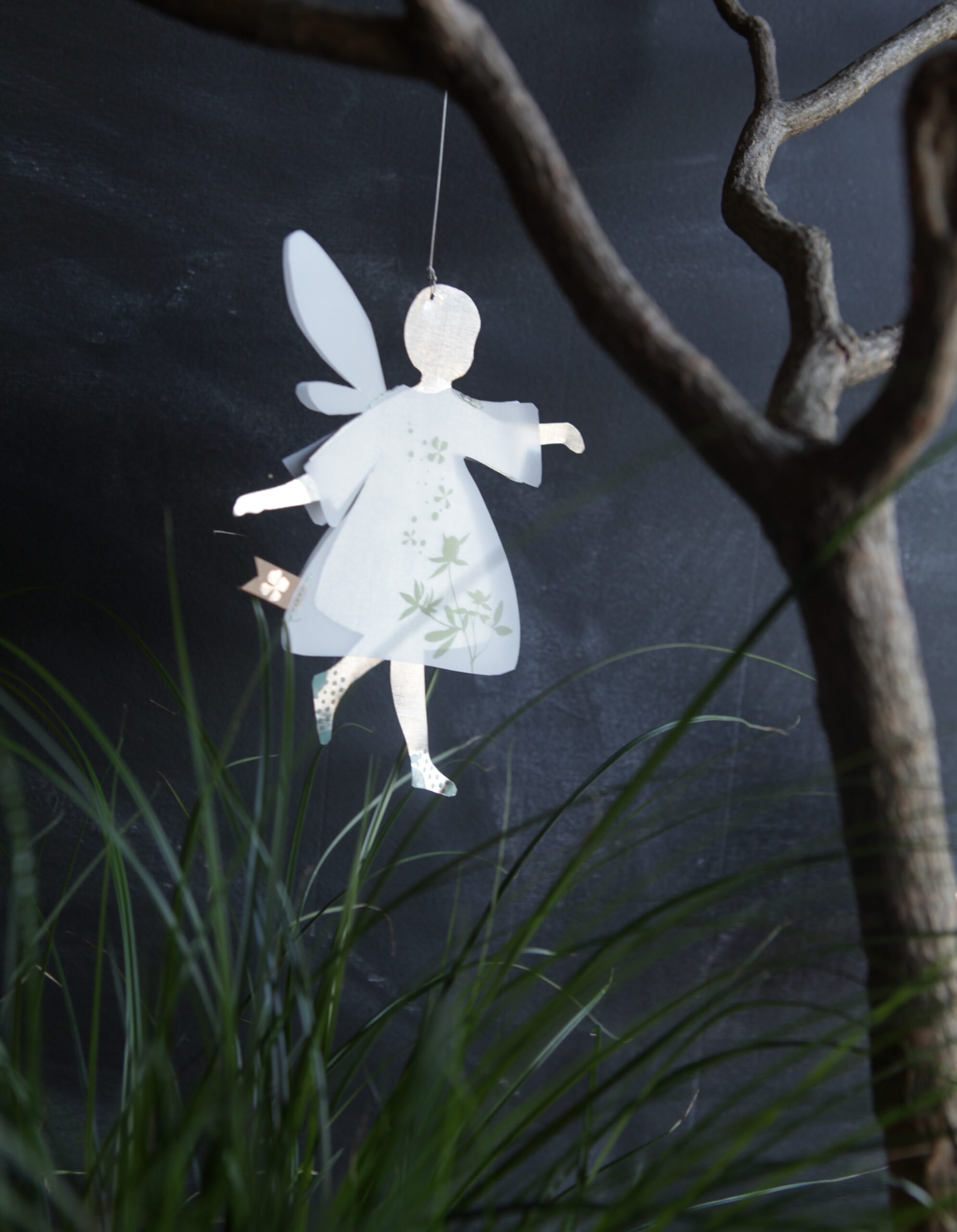 Zum Wünschen und Träumen. Diese zauberhaften Feen in ihren feinen Kleidchen aus Transparentpapier mit filigranem Druck schweben an Ästen und Fenstern und eröffnen einen Blick in eine Welt voller Wunder.